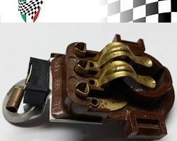 NOS Headlight Globeholder Bakelite SIEM Type unknown fitment. Has 4 female bullet terminals and holds 2 globes, one BA20d Hi/Low and one B15S Town or Park light.